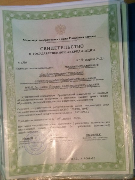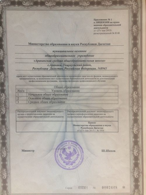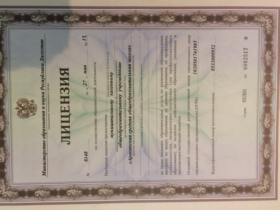 Адрес местонахождения образовательной организации* 368943,Республика Дагестан Унцукульский район, с.Аракани ул. Гос.Советника 2 кл.Магомедова С-Г.А